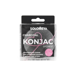 [SOLOMEYA] Очищающий спонж для умывания конняку с древесным углем / Charcoal Konjac Sponge, 1 шт
