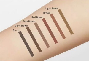 Прорисуйте желаемый контур бровей тонким кончиком карандаша. Аккуратно заштрихуйте область внутри контура, а затем растушуйте пигмент при помощи щёточки-ёршика, которые расположены на другом конце корпуса. Для достижения оптимального эффекта можно применять карандаши двух и более оттенков.