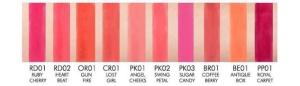 Состав: C12-15 Алкил-Етилгексаноат, Слюда, Церезин, Фенил Триметикон, Озокерит, Гидрогенований Полидекцен, Микрокристаллический Воск, Диоксид Титана (CI 77891), Изогексадекан, Карнаубский Воск, Полиэтилен, Каприл/ Каприк/ Миристичний/ Стеариновый Триглицерид, Оксиды Железа ( CI 77491), Краситель Червоник 7 (CI 15850), Краситель Красный 6 (CI 15850), Масло Ши, Токофероилцетат, Вода, Бутиленгликоль, Фруктовый Экстракт Малины, Фруктовый Экстракт Черники, Кремнезем, Ароматизатор, Пропилпарабен.