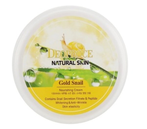 Питательный крем Deoproce Natural Skin Gold Snail Nourishing Cream содержит в составе муцин золотой улитки. Благодаря этому компоненту средство обладает мощными восстанавливающими свойствами, помогает регенерации кожи, её обновлению. Фильтрат улитки способствует заживлению ранок, обладает антибактериальным эффектом. Комплекс пептидов активизирует выработку собственного коллагена, подтягивает кожу, устраняет морщинки. Масло ши питает эпидермис, аллантоин смягчает и успокаивает. Насыщенная текстура крема легко распределяется и впитывается.