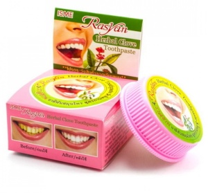 Травяная зубная паста RasYan состоит из натуральных компонентов. Она устраняет запах изо рта, обладает антибактериальным и отбеливающим эффектом, удаляет зубной камень и налет от сигарет, кофе и чая, освежает дыхание до 12 часов , подходит для чувствительных зубов.