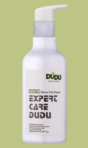 Шампунь с кератином от DUDU заполняет пустоты в структуре волос, делает их более плотными и тяжелыми, за счет этого они становятся более прямыми, убирается «пушок», перестают сечься, появляется здоровый блеск.